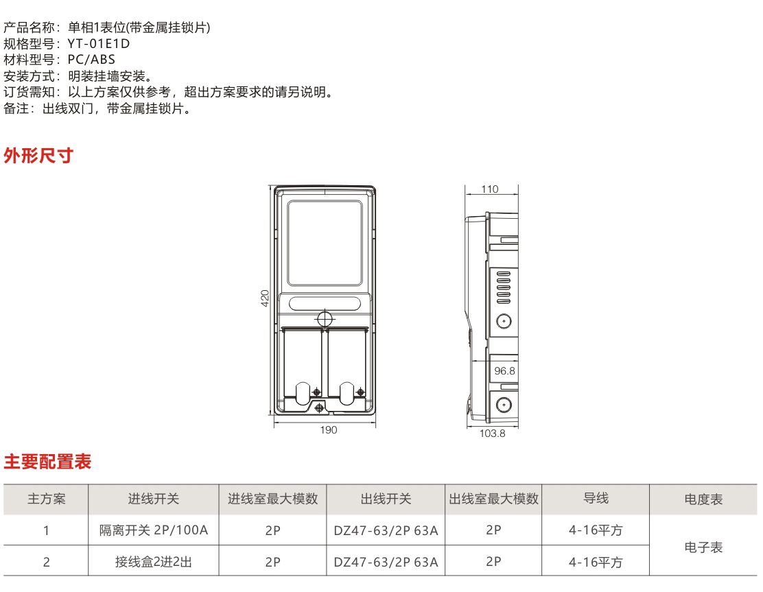 YT-01E1D單相1表位(帶金屬掛鎖片)