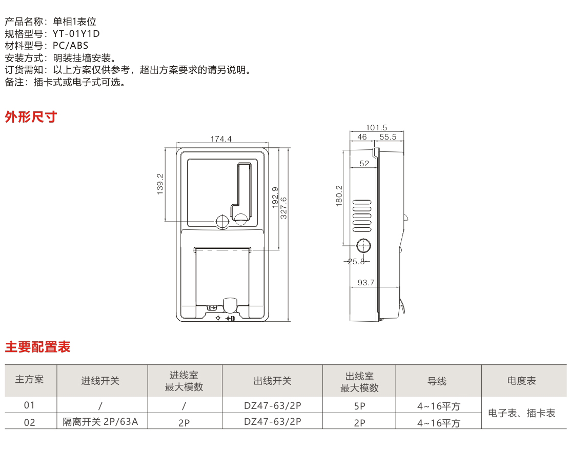 YT-01Y1D單相1表位