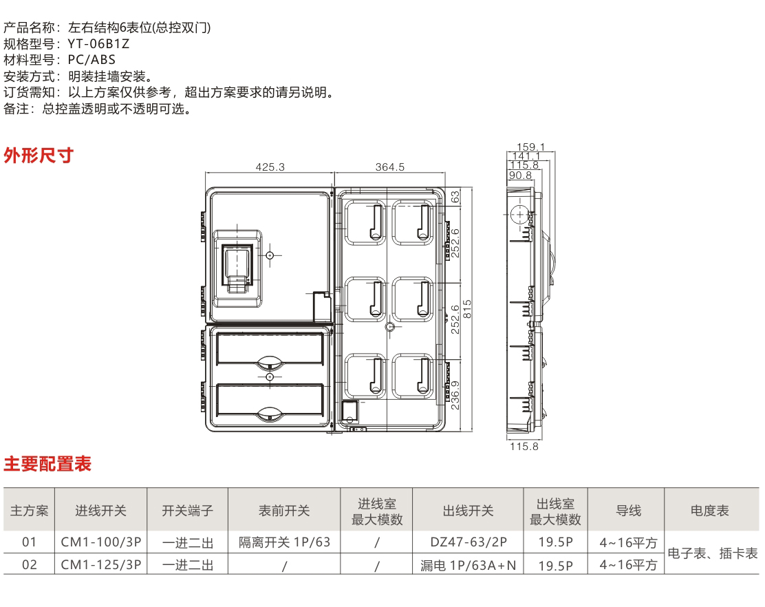 YT-06B1Z左右結(jié)構(gòu)6表位(總控雙門)