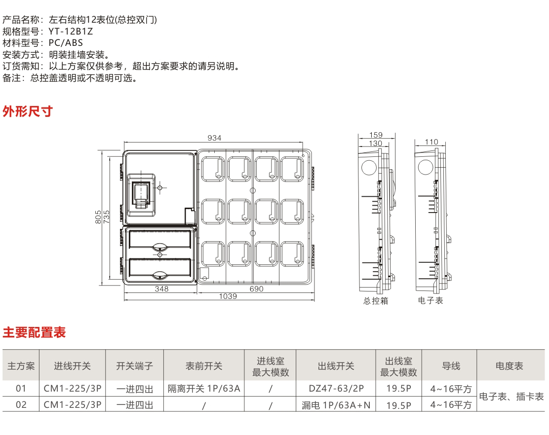 YT-12B1Z左右結(jié)構(gòu)12表位(總控雙門)