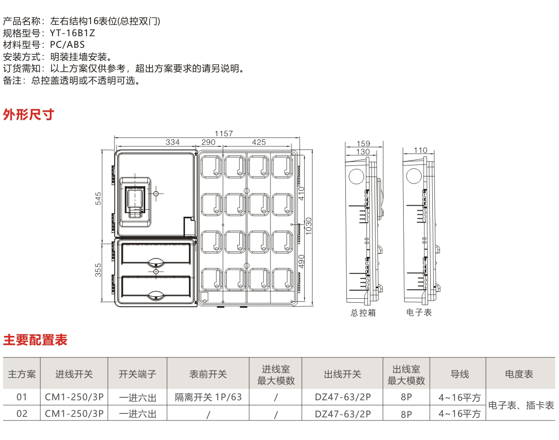 YT-16B1Z左右結(jié)構(gòu)16表位(總控雙門)